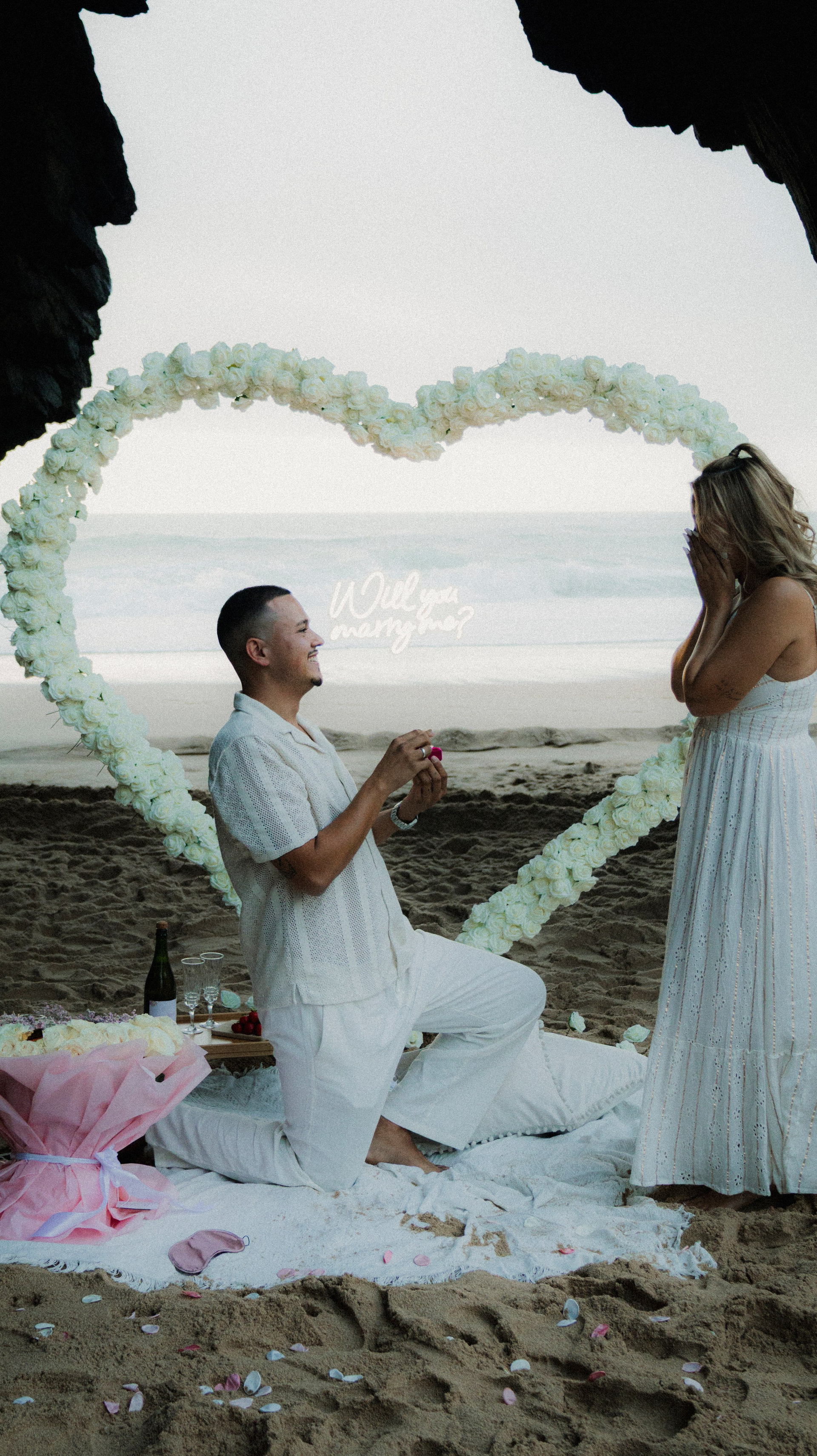 Ele planeou tudo. Nós filmámos a magia acontecer. Um sim emocionante à beira-mar.